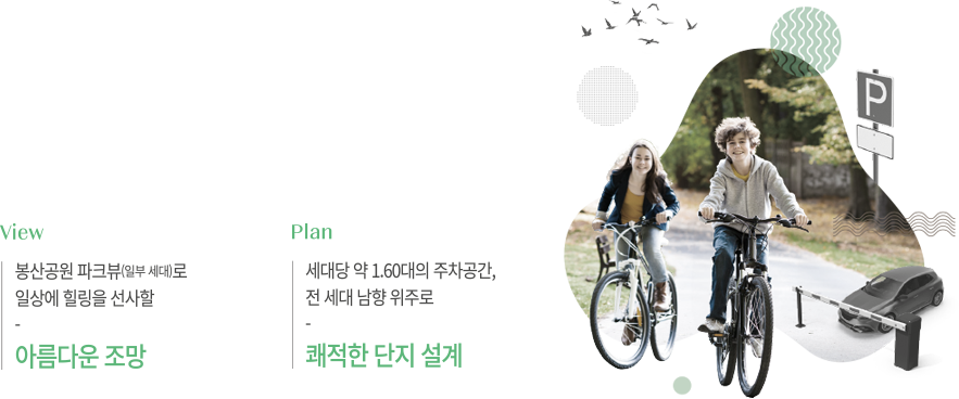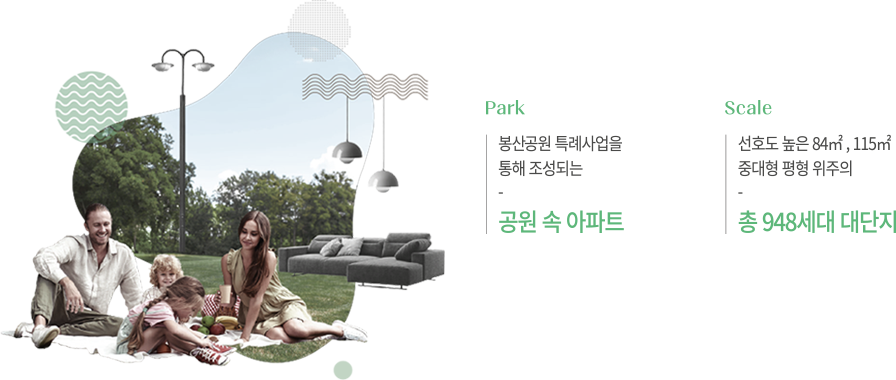봉산공원의 품에 둘러싸인 대단지로 가치가 다른 파크 라이프를 선사합니다.
