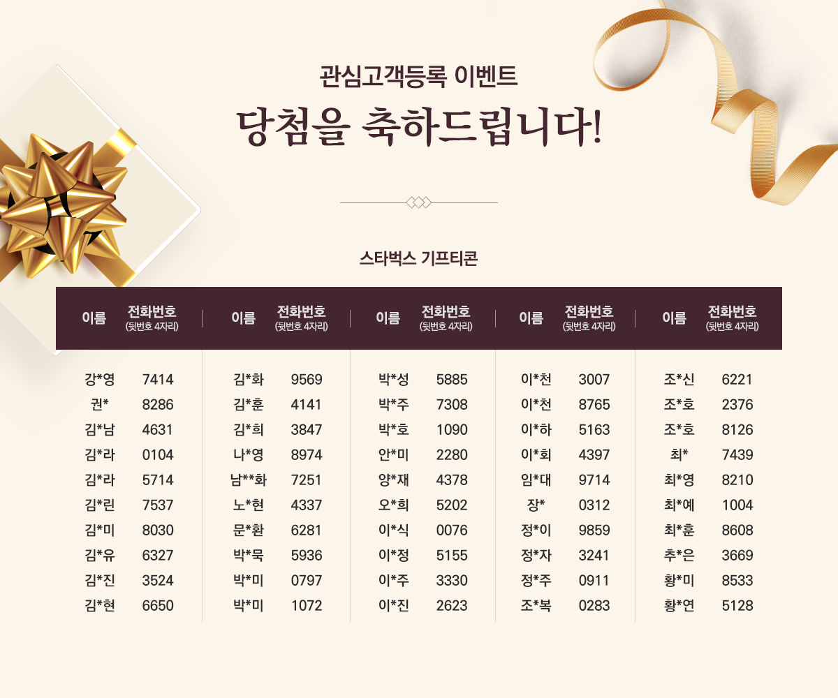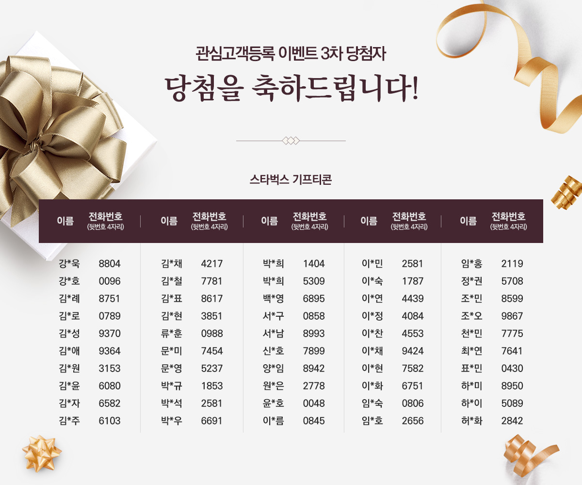 관심고객등록 이벤트 3차 당첨자