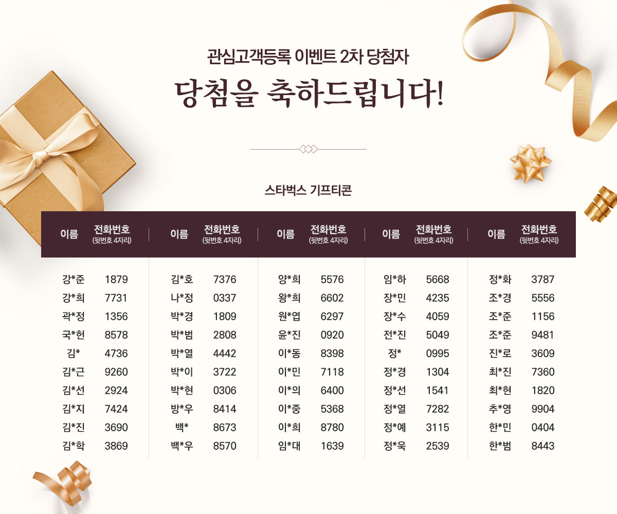 관심고객등록 이벤트 2차 당첨자